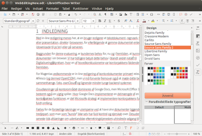 Hvis du gerne vil bruge den indbyggede standardskabelon, men gerne vil ændre skrifttyper eller størrelser, kan du finde dem under Funktioner - Indstillinger - Writer - Grundlæggende skrifttyper.
